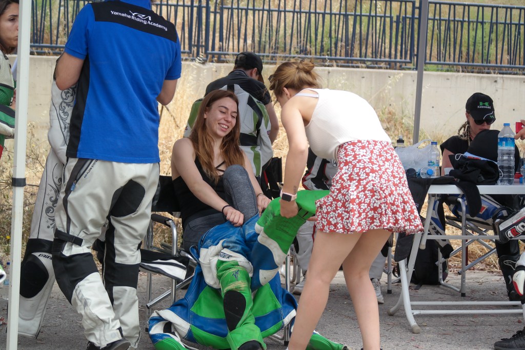 Ne kadar mutlu olsam bile kendi üzerimde kurduğum bir baskı vardı. Performans Motors, yani Serkan Abim ve Orhan Abim beni buraya getirebilmek için ciddi fedakarlıklar yapmıştı ve onları mutlu edebilmek istiyordum. Hedefim 1. olmak değildi, pist üzerinde bir hakimiyet kurmak, güzel bir süre yapmaktı. Ama piste çıktığımda hiç öyle değildi. Hızlı olsam, motoru yatırsam bile pozisyonum doğru değildi ve farkındaydım. Elimden bir şey gelmiyordu. Önümdeki kişilere aşırı odaklanıyordum. Geçip gidebilecek olsam bile çarpışma korkusuyla hiçbir şey yapamıyordum. Antreman bittiğinde İlayda moralimin bozuk olduğunu fark edip yanıma geldi. Kendimi bu kadar kasmamamı söyledi ki haklıydı ama bendeki jeton biraz geç düştü.
